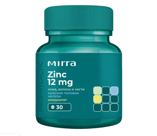 Обеспечивает деятельность многих ферментных систем организма и нормализует обмен веществ. Помогает полноценному функционированию мужских половых желез. Рекомендуется при состояниях, связанных с повышенным расходованием цинка организмом (период роста, беременность, восстановительный период после травм и инфекций). Абсолютно необходим для поддержания нормального состояния кожи, волос и ногтей. Биодобавку МИРРА-ЦИНК принимают во время еды, курсами, как отдельно, так и в комплексе с другими БАД.